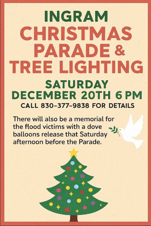 This year’s celebration holds deeper meaning for the Ingram community. Earlier that day, Ingram will host a special memorial in remembrance of the lives lost during the devastating July 4th flood. As part of this tribute, a release is scheduled of helium-filled doves — a symbolic and heartfelt gesture to honor friends and loved ones who are no longer with us.
